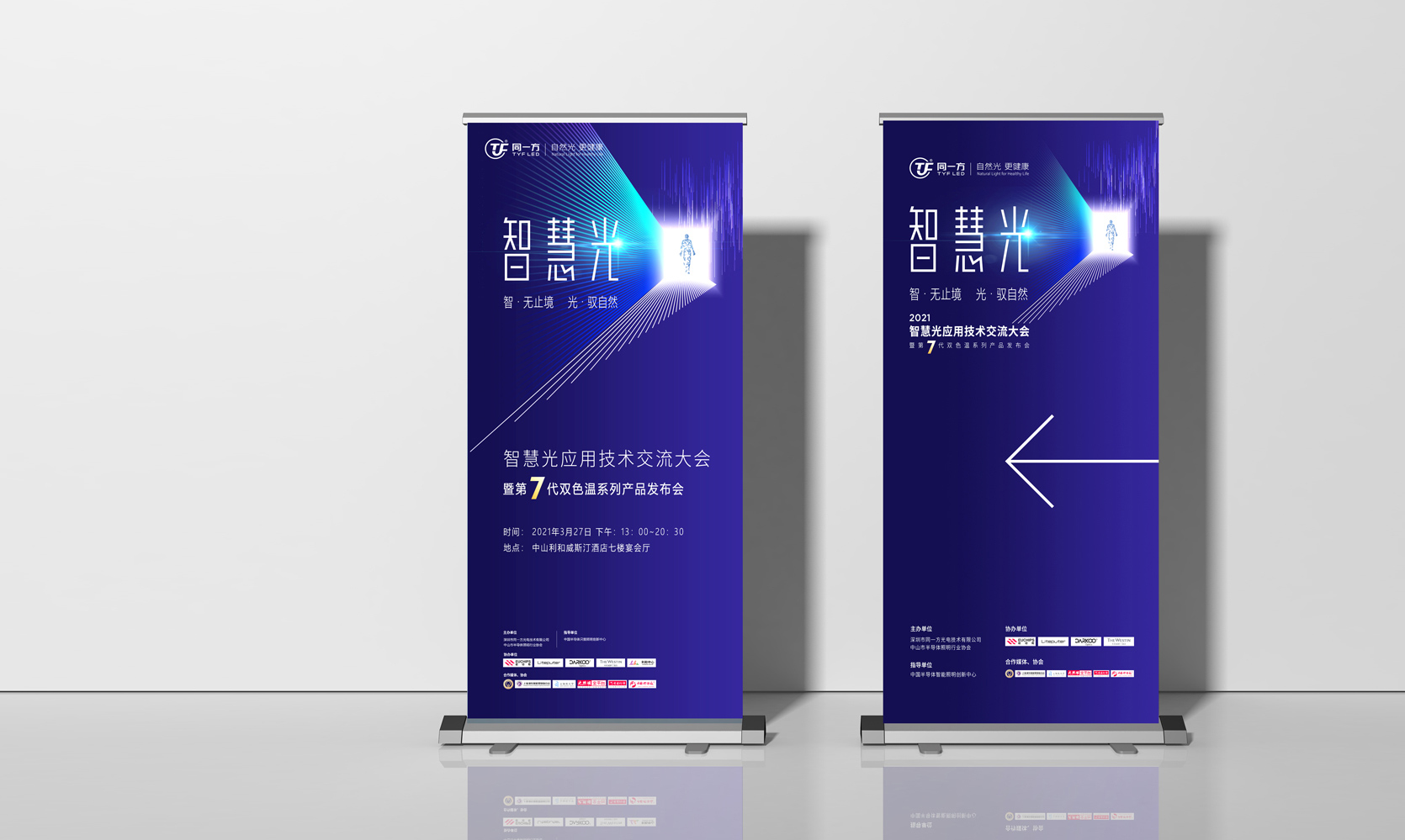 智慧光應用技術交流大會,暨第7代雙色溫系列產品發布會是繼“自然光”植物照明系列發布以后,同一方品牌戰略又一主打產品系列“智慧光”智能調光調色TB系列產品的新品發布會,全場活動物料由標派視覺根據同一方整體VI升級方向,進行策略設計和輸出,做到視覺符號化,高端,統一,取得不錯效果。